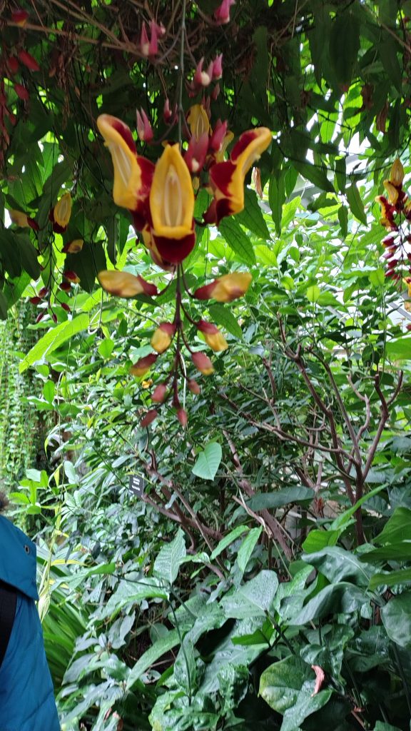 As the weather was squally ,we retreated to the glasshouses to view the exotic plants including the Jade vines and to play with the guppy fish